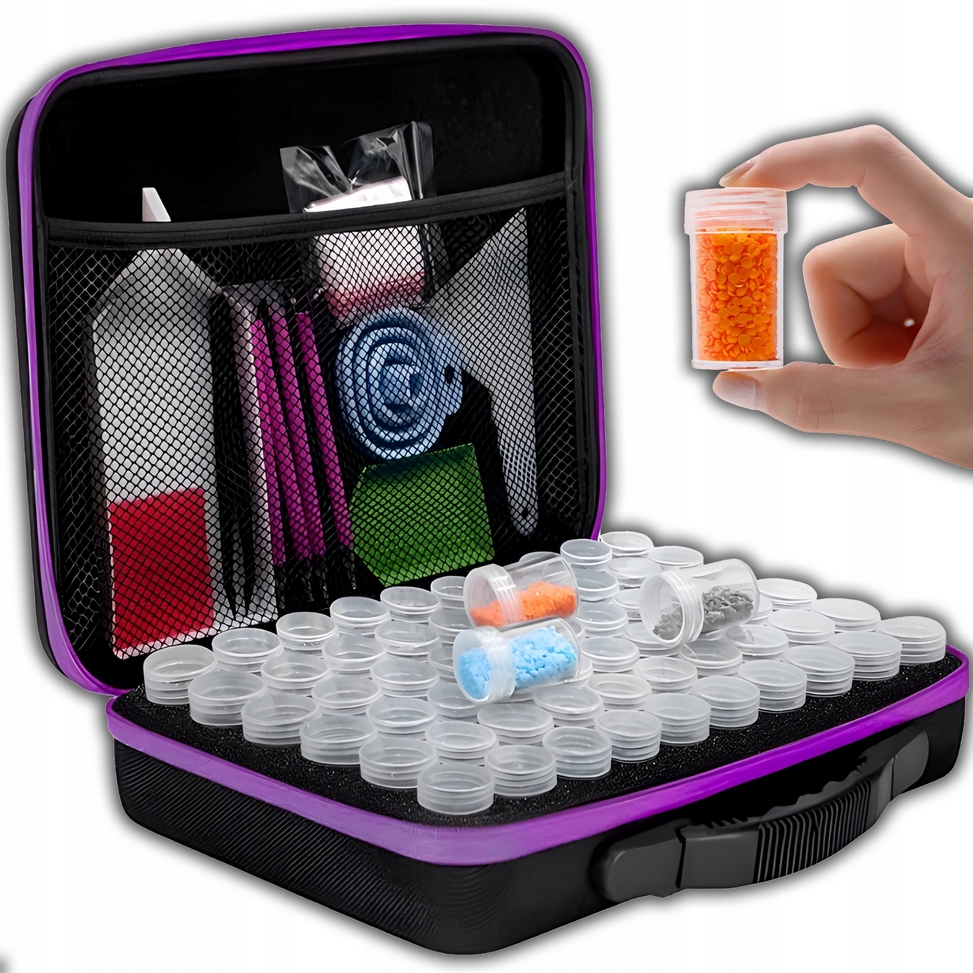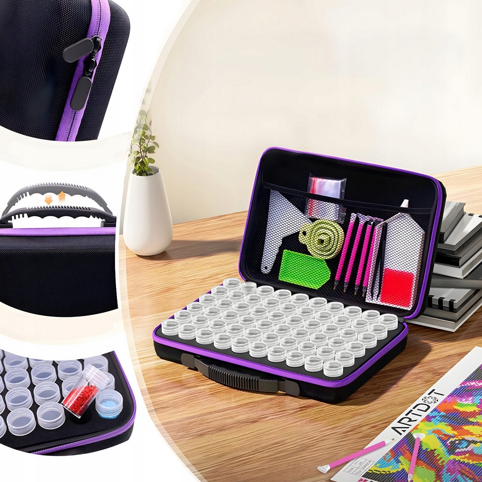 Dzięki temu bez problemu możemy zabrać ze sobą wszystkie narzędzia niezbędne do wykonania haftu diamentowego, niezależnie od tego, czy tworzymy w domu czy w podróży.