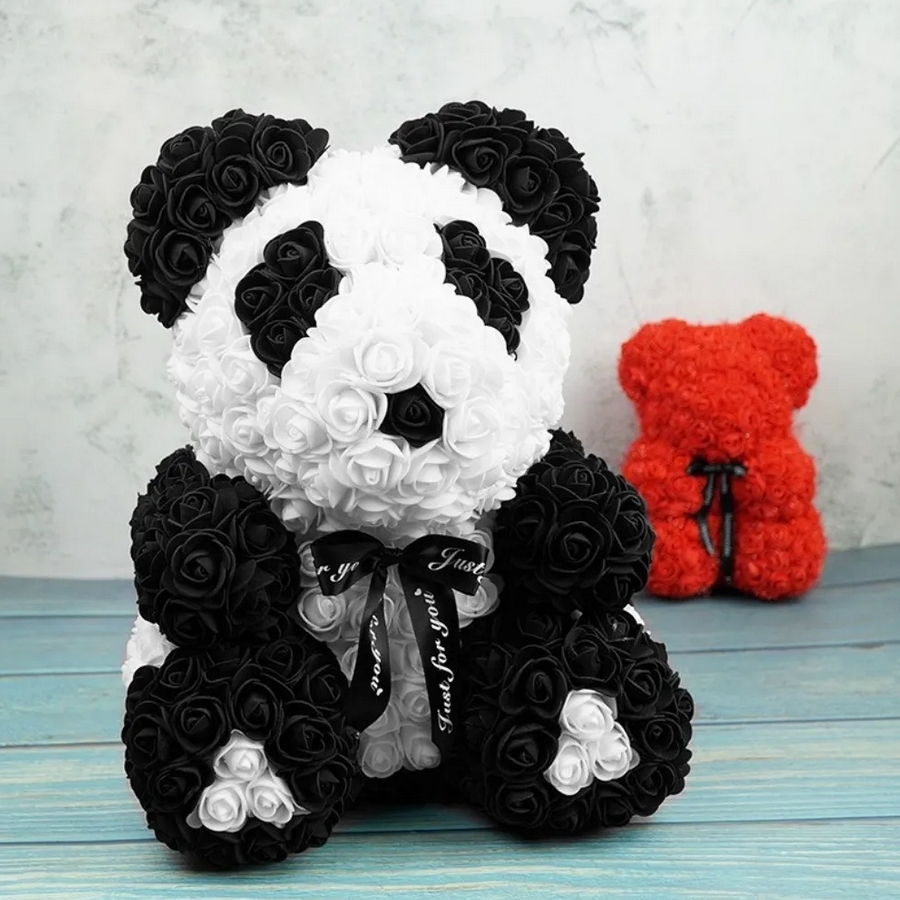 Róże z których wykonany został miś są z tworzywa PE, a dzięki temu są wytrzymałe oraz bezzapachowe – nie uczulają, czyli jest to świetna alternatywa dla osób uczulonych na kwiaty.