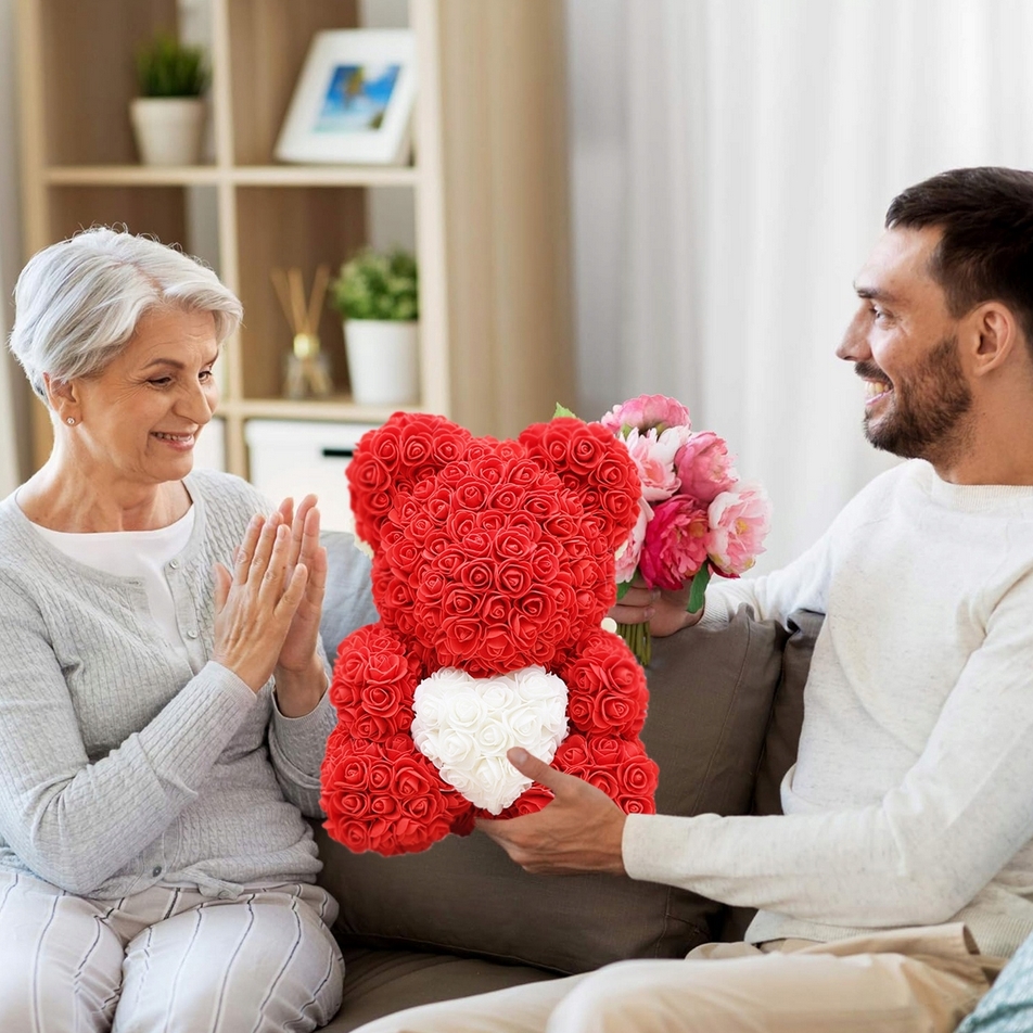 Różany miś świetnie sprawdzi się jako podarunek na Walentynki, Dzień Kobiet, Dzień Matki, rocznicę ślubu oraz wiele innych okazji.