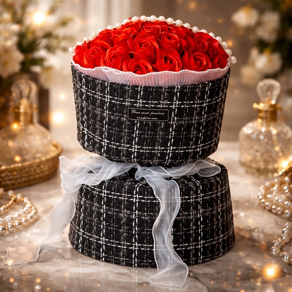 AMORE MIO Róże mydlane bukiet ozdoba prezent na walentynki dzień kobiet flowerbox 30cm