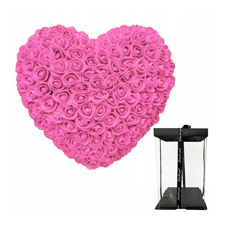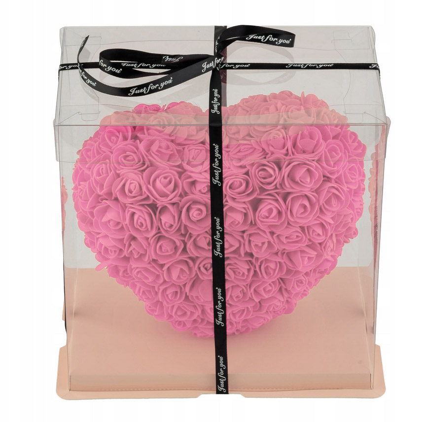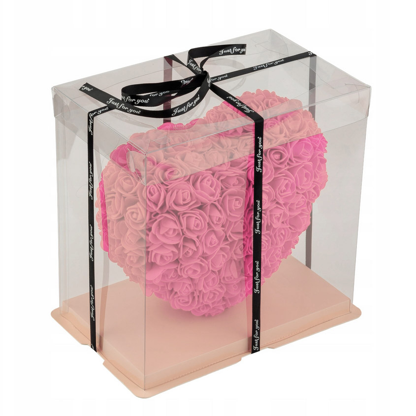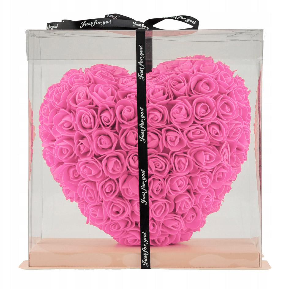 AMORE MIO Różowe serce z róż kwiatów ozdoba upominek prezent walentynki rose heart + box 25cm OUTLET