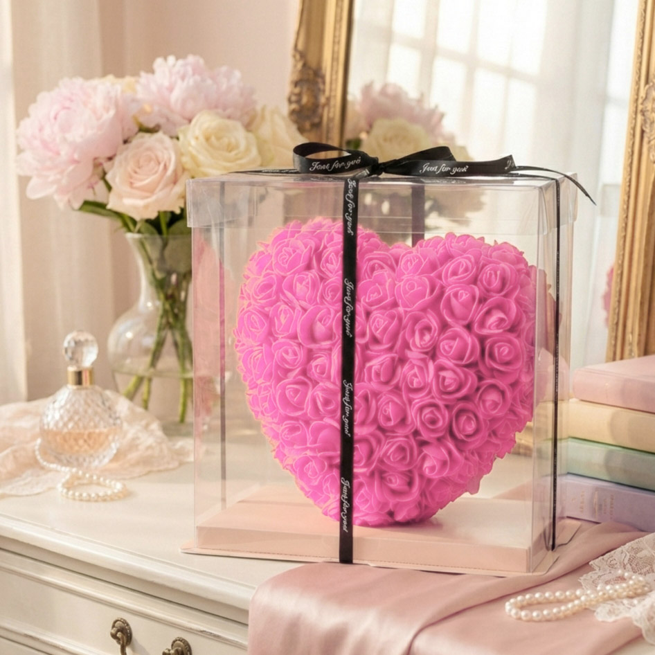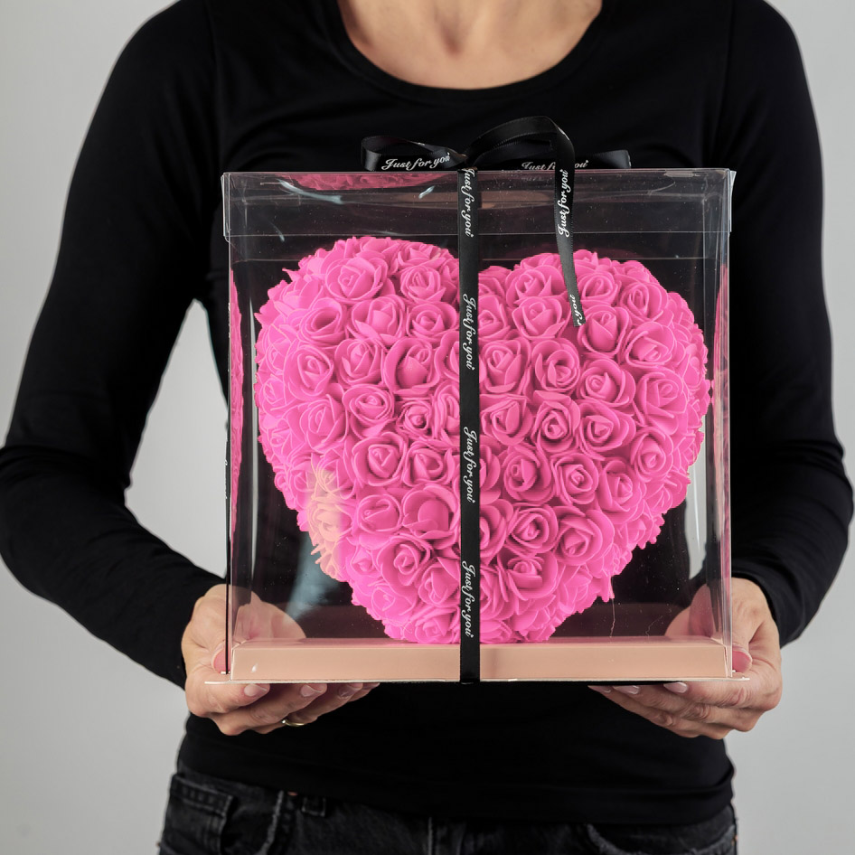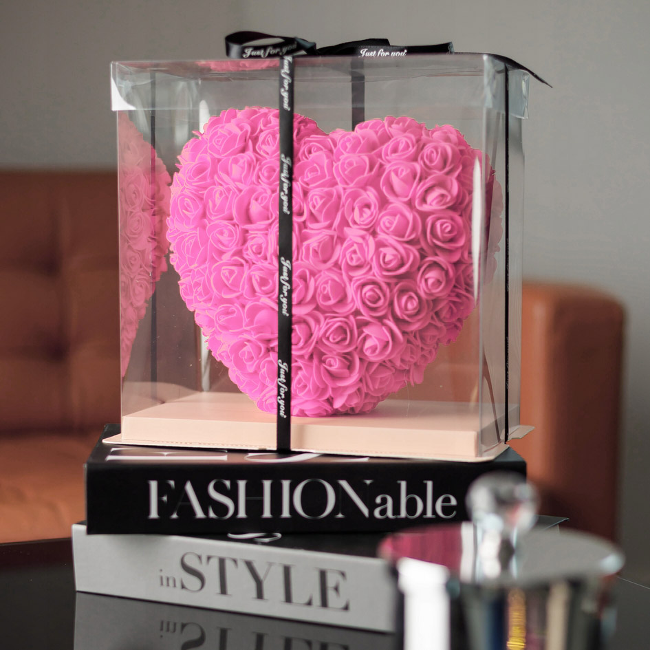 Różowe serce z róż piankowych to elegancki prezent, który doskonale sprawdzi się na Walentynki lub rocznicę.