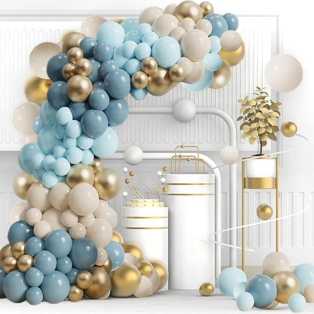 Balony niebieskie złoty chrom pastelowe dekoracja zestaw 135 el