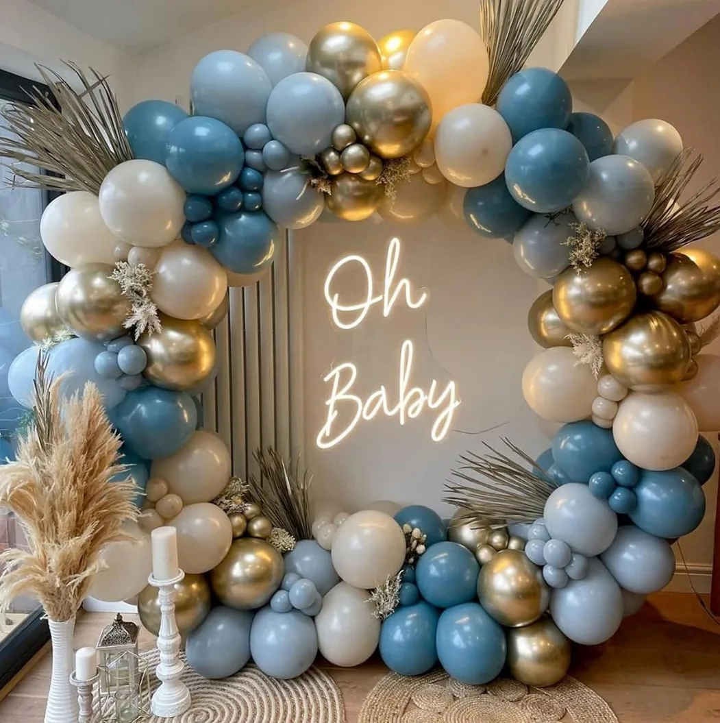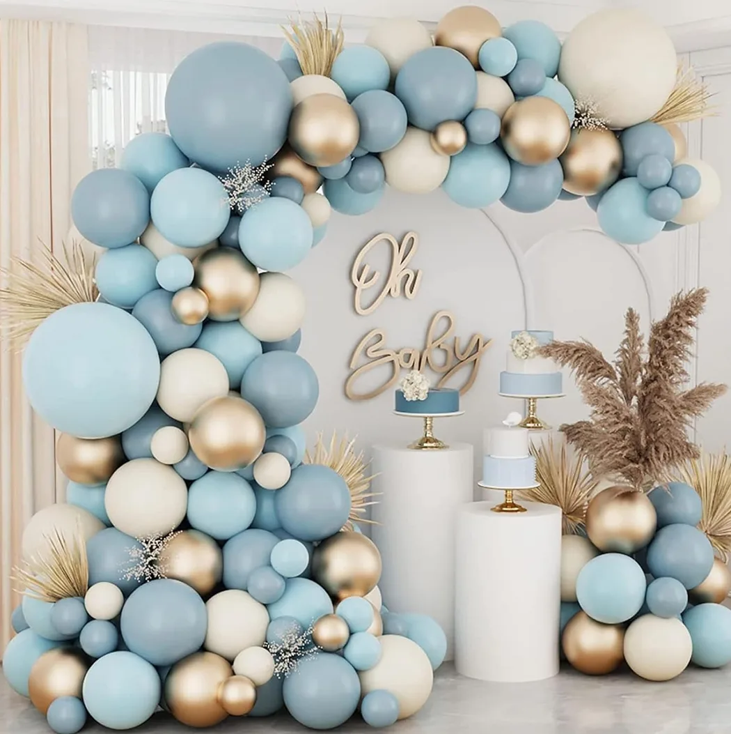 Napisz pierwszą opinię o „Balony niebieski złoty chrom pastelowe dekoracja zestaw 135 el”