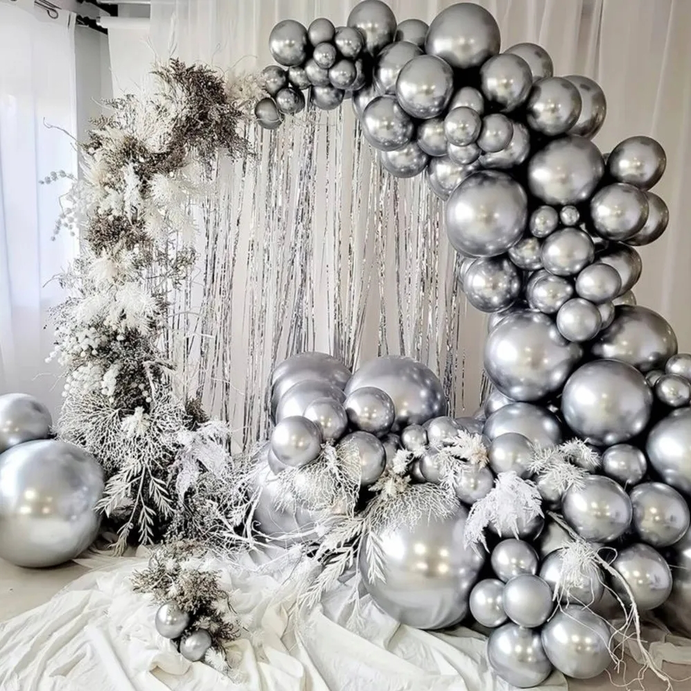 Balony szare chromowane to eleganckie elementy dekoracji, idealne do uroczystości i imprez o wyjątkowym charakterze.