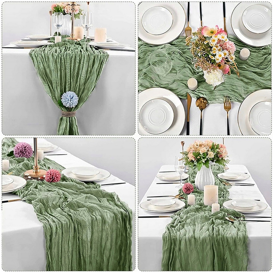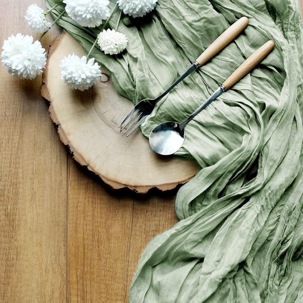 Bieżnik boho na stół oliwkowy marszczony dekoracja stołu ozdoba 3m