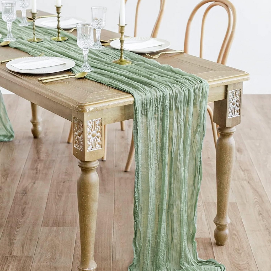 Dzięki swoim wymiarom 300×90 cm można go wykorzystać zarówno jako klasyczny bieżnik biegnący przez środek stołu, jak i do tworzenia dekoracyjnych drapowań.