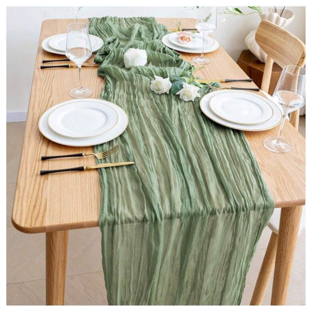 Napisz pierwszą opinię o „Bieżnik boho na stół oliwkowy marszczony dekoracja stołu ozdoba 3m”