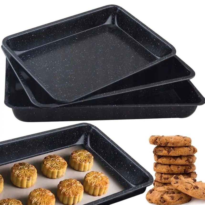 Praktyczny zestaw trzech blach o różnych rozmiarach.