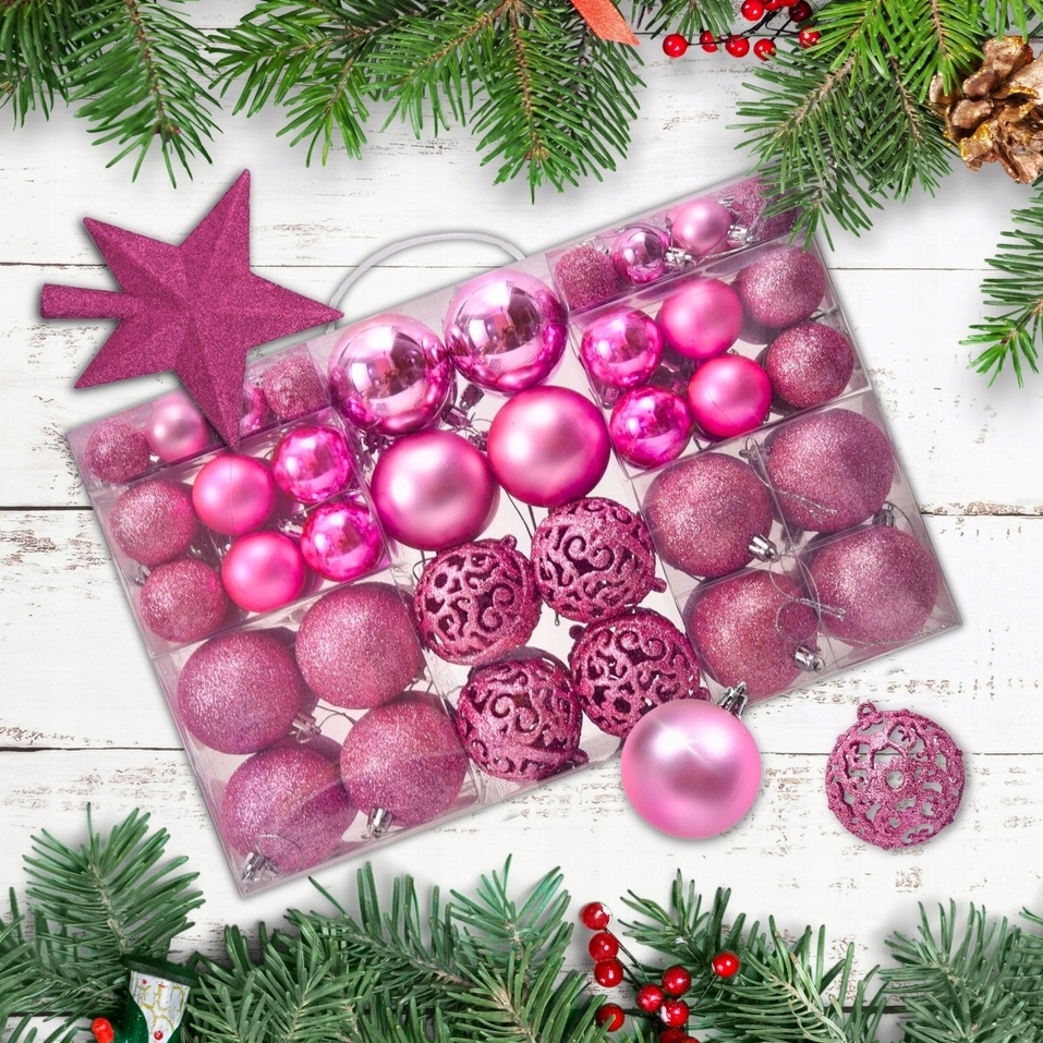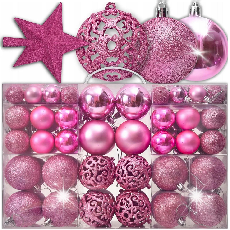 Napisz pierwszą opinię o „Bombki choinkowe na choinkę różowe ozdoba świąteczna gwiazda zestaw premium xxl zestaw 100szt”
