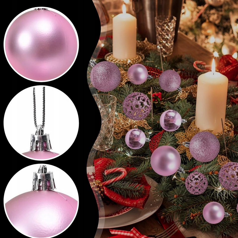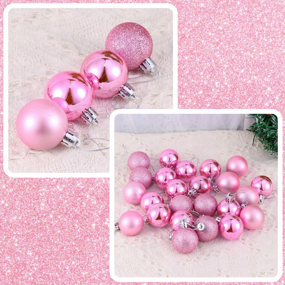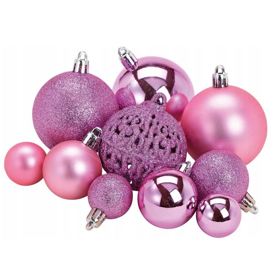 Zestaw różowych bombek choinkowych wraz z gwiazdą umożliwia stworzenie jedynych w swoim rodzaju dekoracji oraz nadanie wnętrzom niepowtarzalnego klimatu bożonarodzeniowego.
