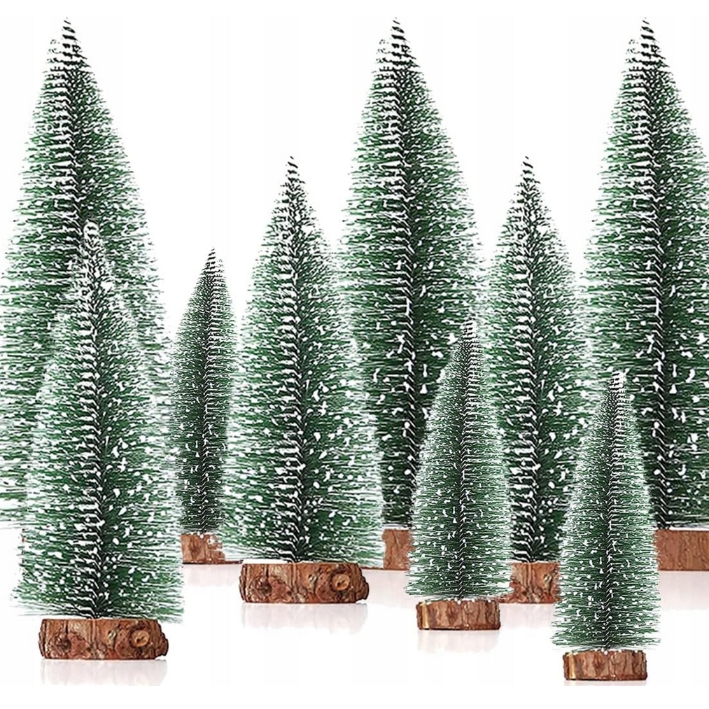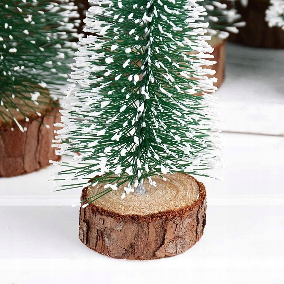 Choinki zielone mini zestaw choinek na pniu dekoracja ozdoba świąteczna 7szt