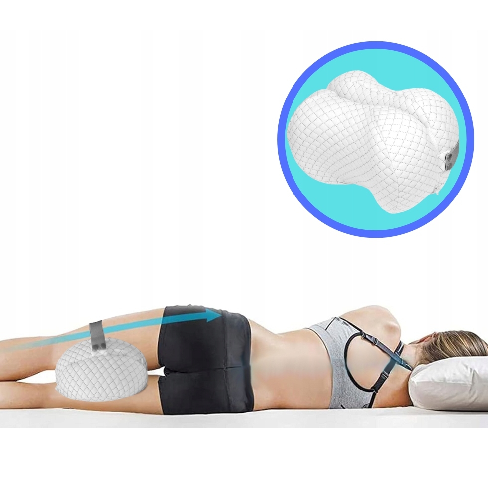 Poduszka ortopedyczna między nogi i kolana została zaprojektowana z myślą o prawidłowym ułożeniu nóg oraz odciążeniu kręgosłupa podczas snu w pozycji bocznej.