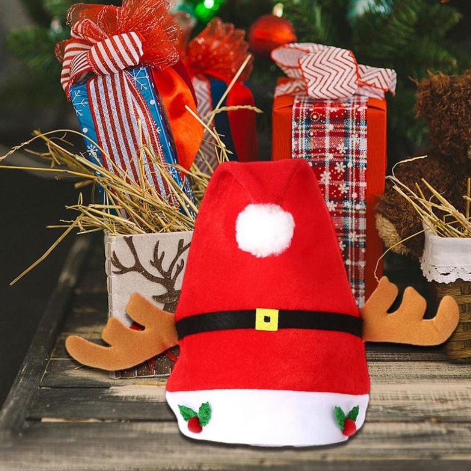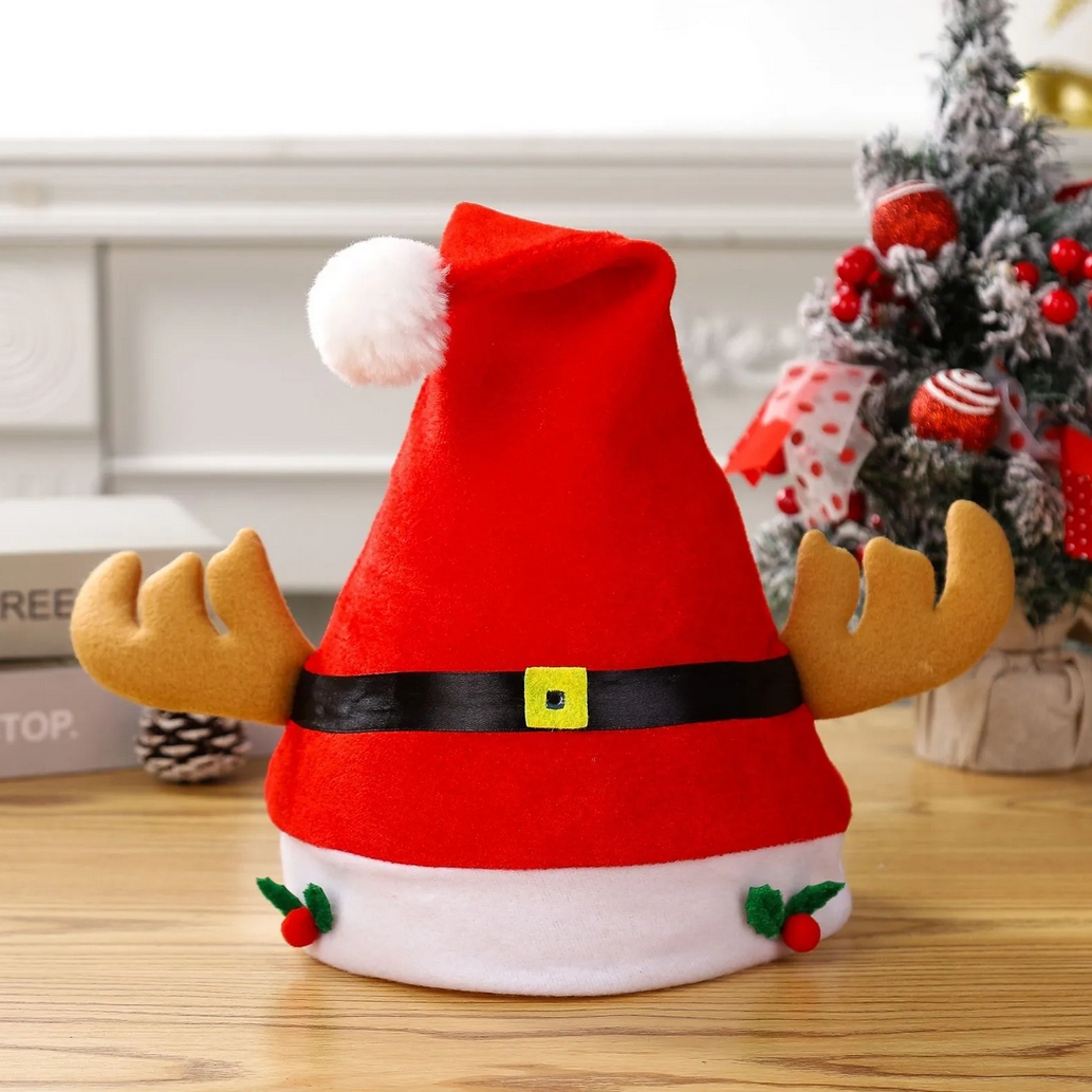 Czapka świętego mikołaja czerwona z rogami renifera przebranie strój kostium świąteczny ozdoba świąteczna