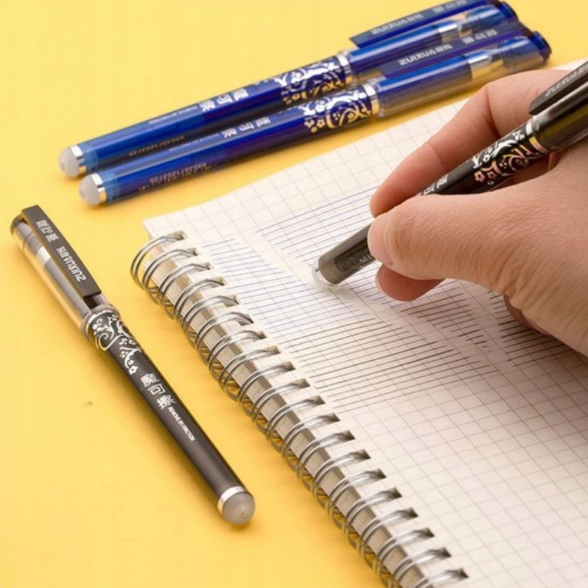 Długopis wymazywalny sprawdzi się przede wszystkim w szkole, ponieważ gumką, którą jest zakończony można wymazać każdy popełniony błąd podczas pisania.