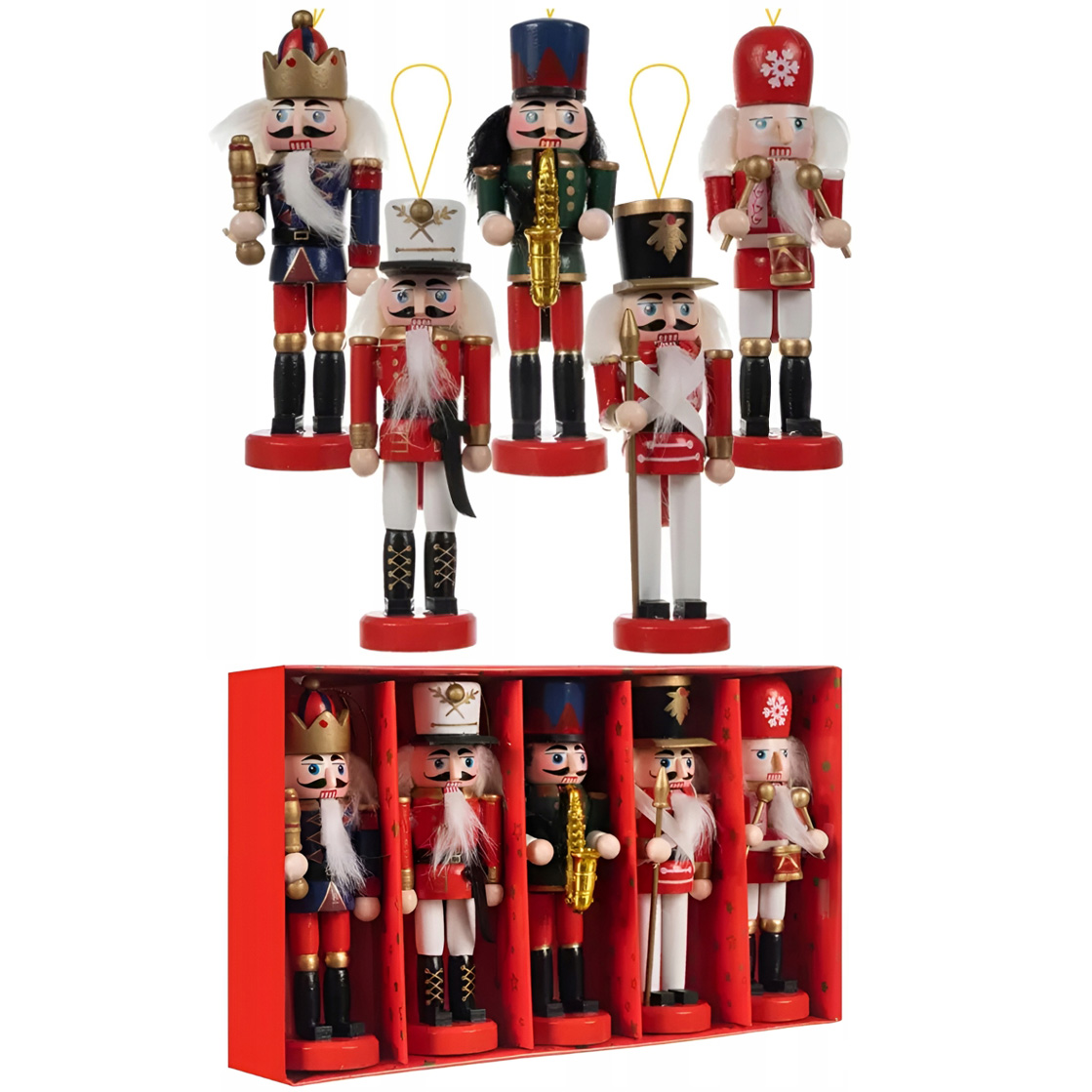 W każdym zestawie znajduje się 5 różnych dziadków do orzechów.