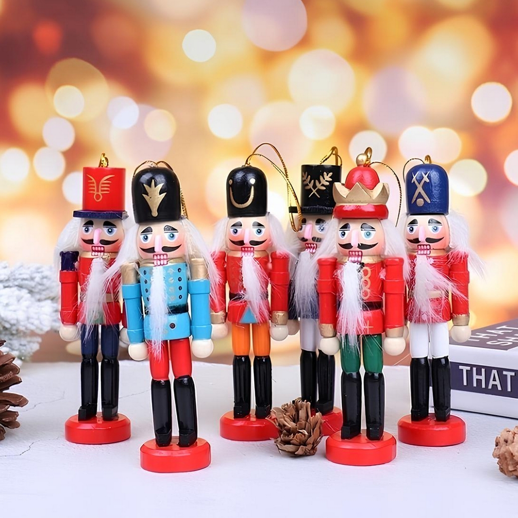 Drewniany dziadek do orzechów drewno ozdoba świąteczna zawieszki na choinkę 6 figurek