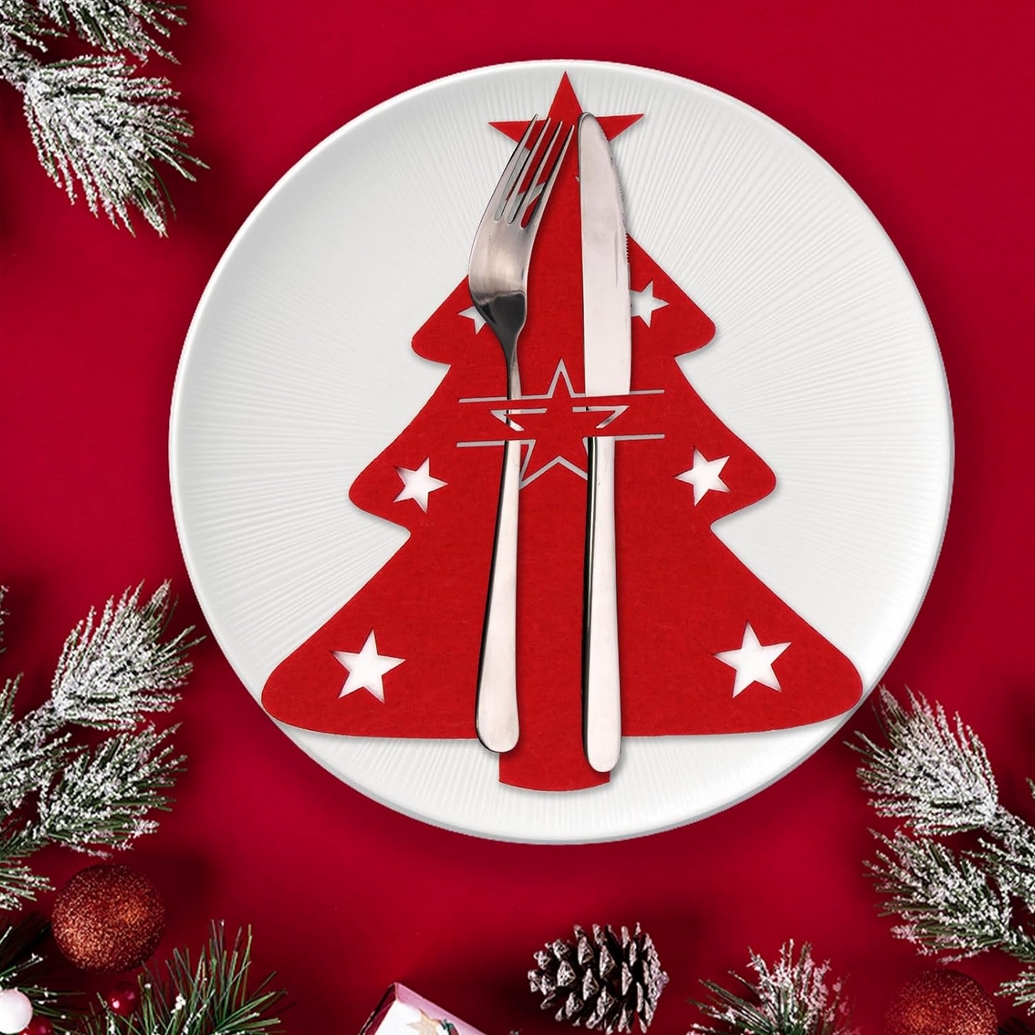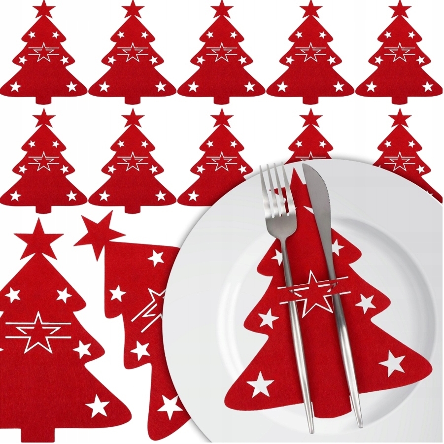 Etui na sztućce pokrowiec podkładka dekoracja na stół czerwona choinka ozdoba świąteczna 12szt