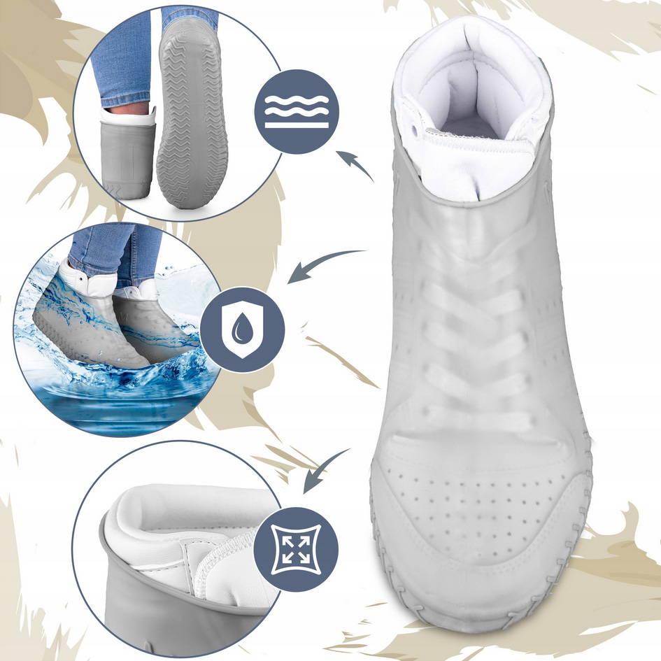 Wodoodporne ochraniacze na buty wykonane są z wysokiej jakości elastycznego, nieprzemakalnego materiału, który skutecznie chroni obuwie przed deszczem, błotem i zabrudzeniami.