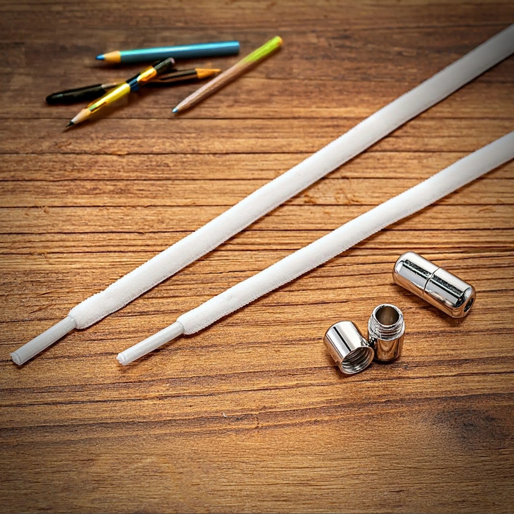 Metalowe spinki pozwalają estetycznie schować końcówki sznurowadeł, zapobiegając ich strzępieniu.