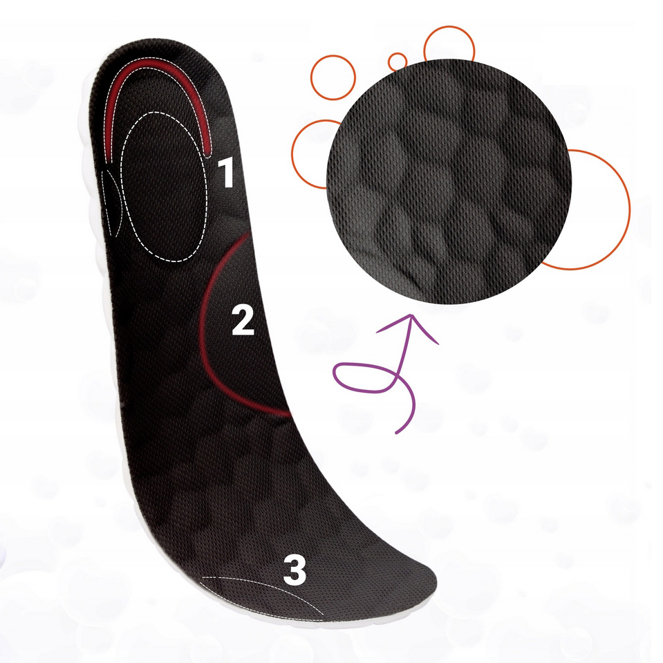 Lekkie i elastyczne wkładki nie obciążają stóp ani stawów, co zwiększa wygodę chodzenia.