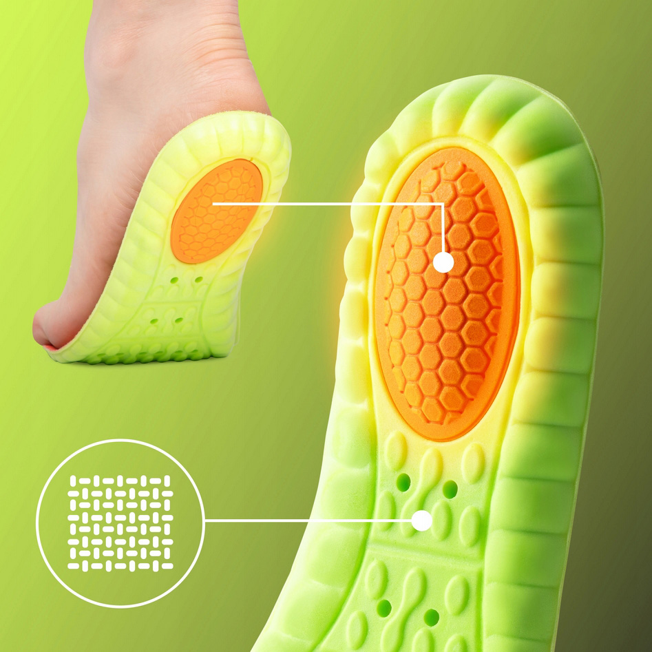 Zapewniają skuteczną amortyzację pięty i śródstopia, redukując wstrząsy oraz odciążając stawy i kręgosłup.