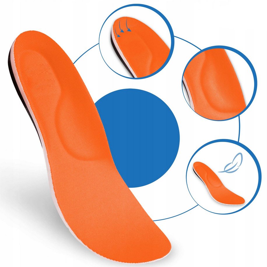 Korytkowa konstrukcja wkładki wspiera prawidłowe ułożenie stopy i pomaga w profilaktyce płaskostopia wzdłużnego.