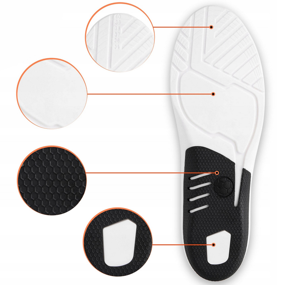 Wykonanie z elastycznej pianki EVA zapewnia skuteczną amortyzację wstrząsów i redukcję nacisku na stopy.