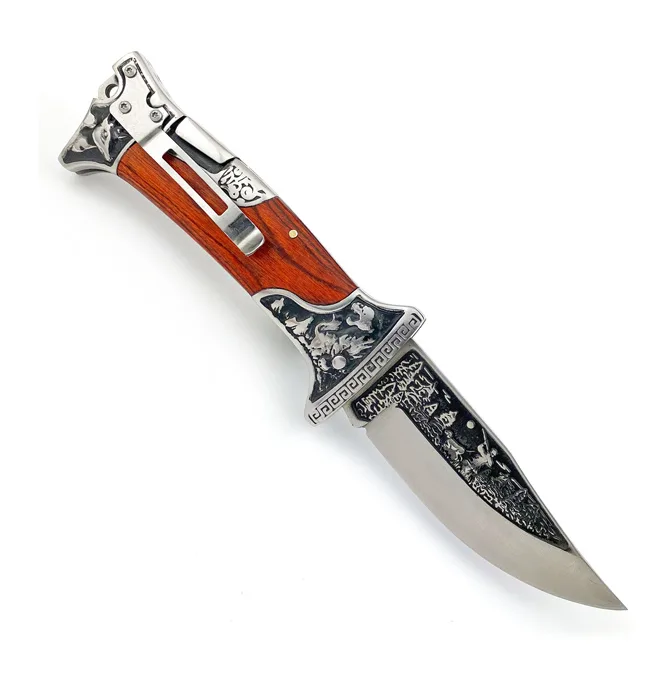 Wytrzymałość i piękny wygląd zapewnia grube ostrze zdobione licznymi grawerami wykonane z wysokogatunkowej stali nierdzewnej.