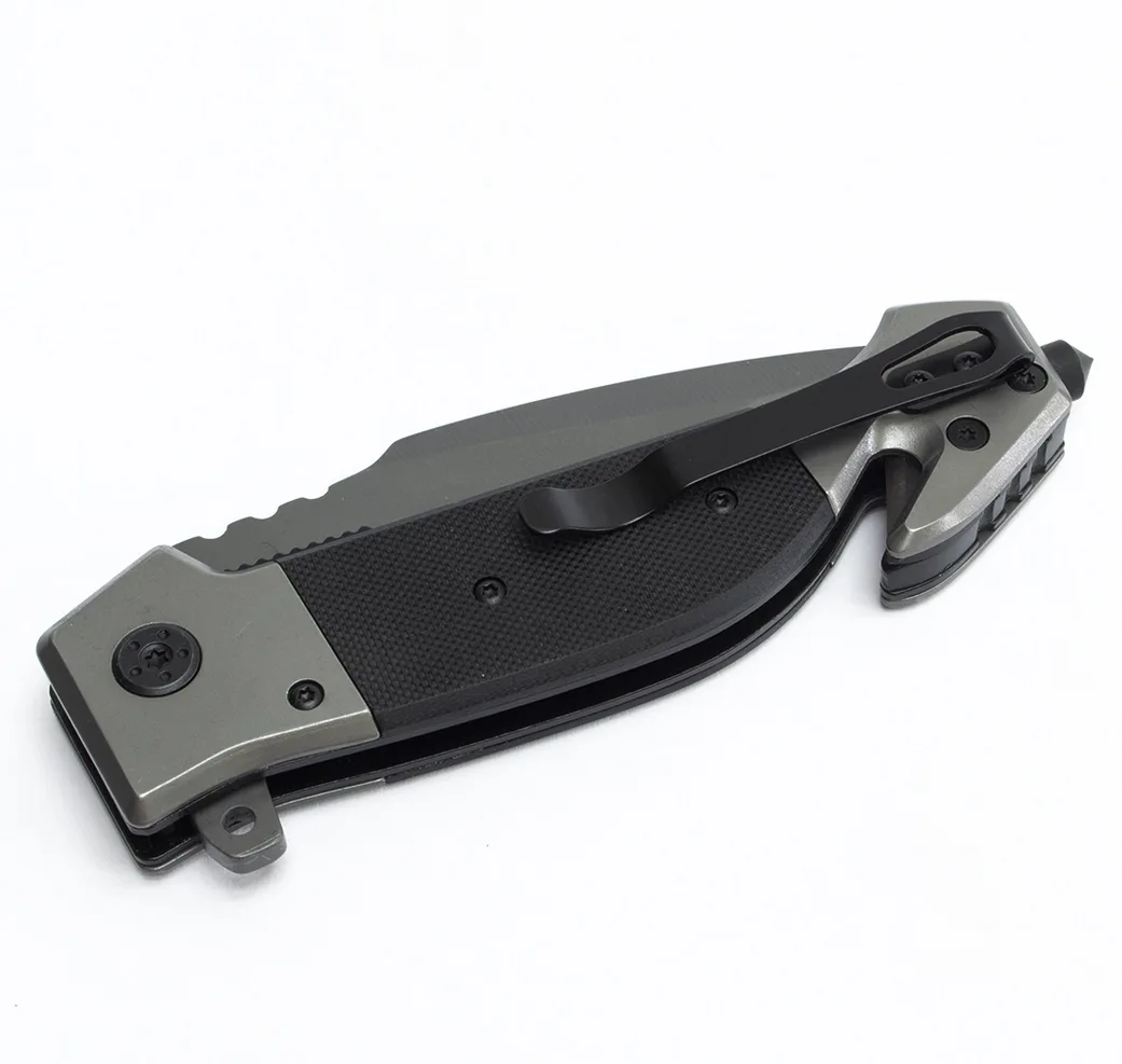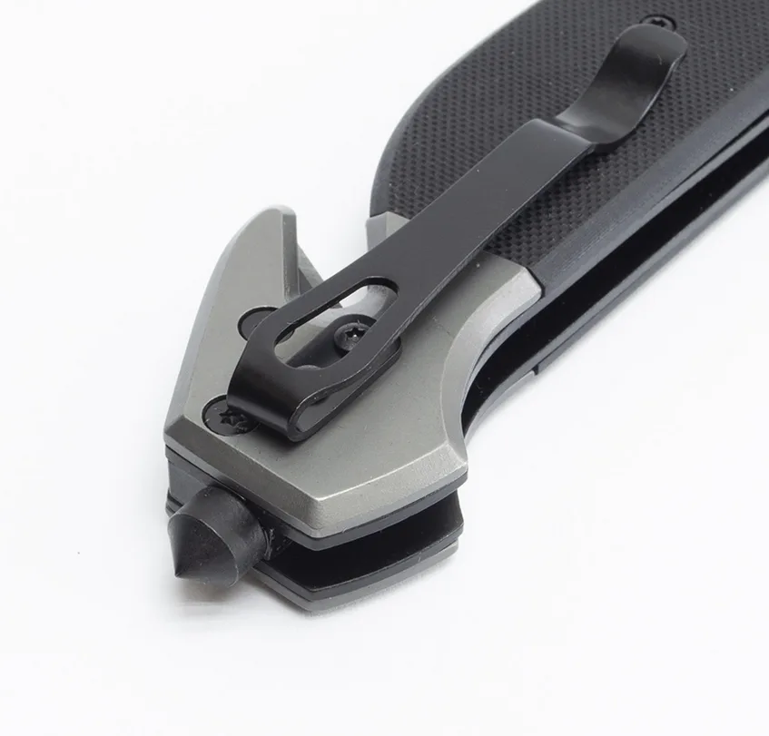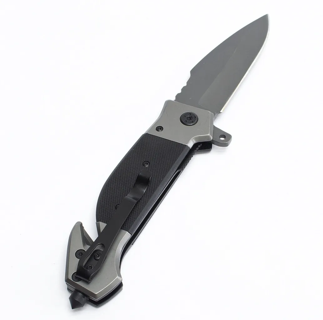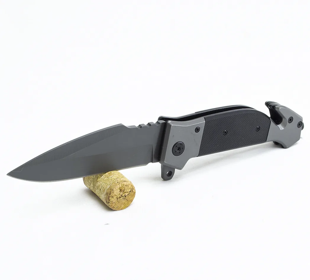 Nóż wyposażony jest w przecinak do cięcia pasów i zbijak do szyb, dzięki czemu przyda się w wielu trudnych sytuacjach.