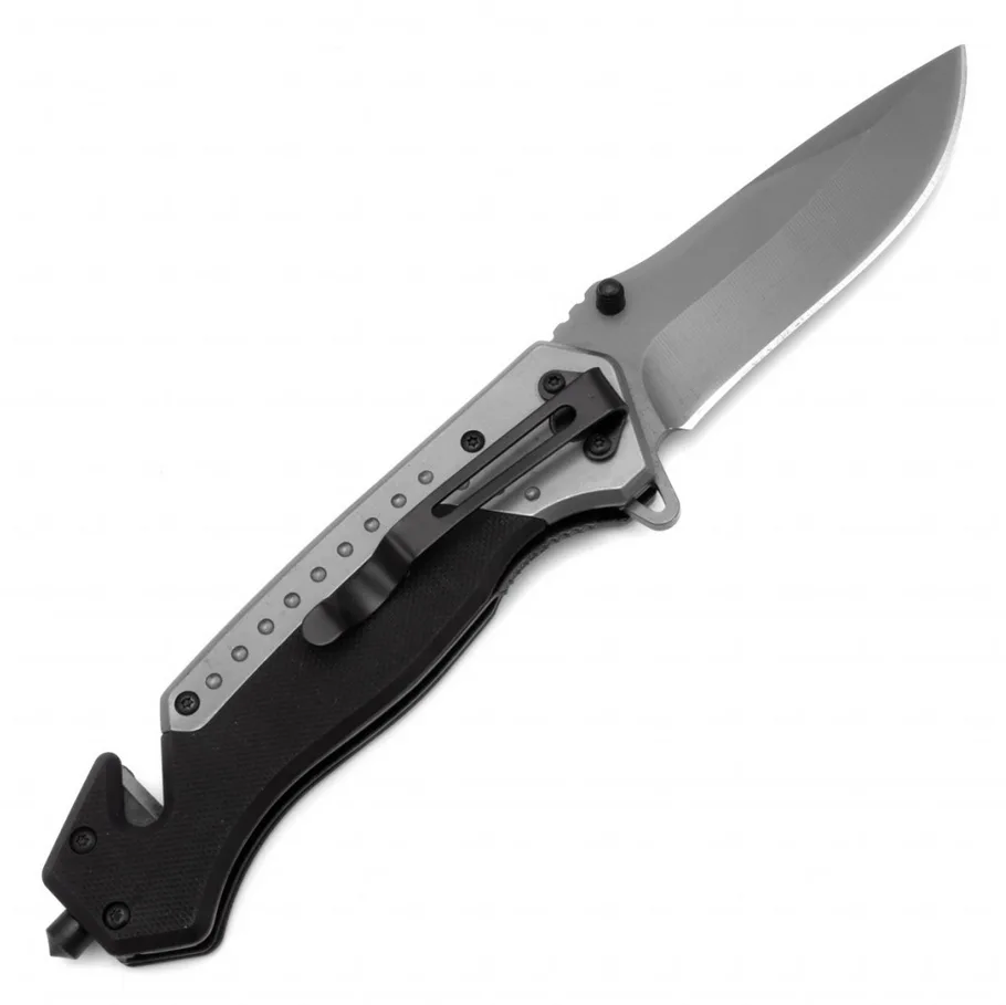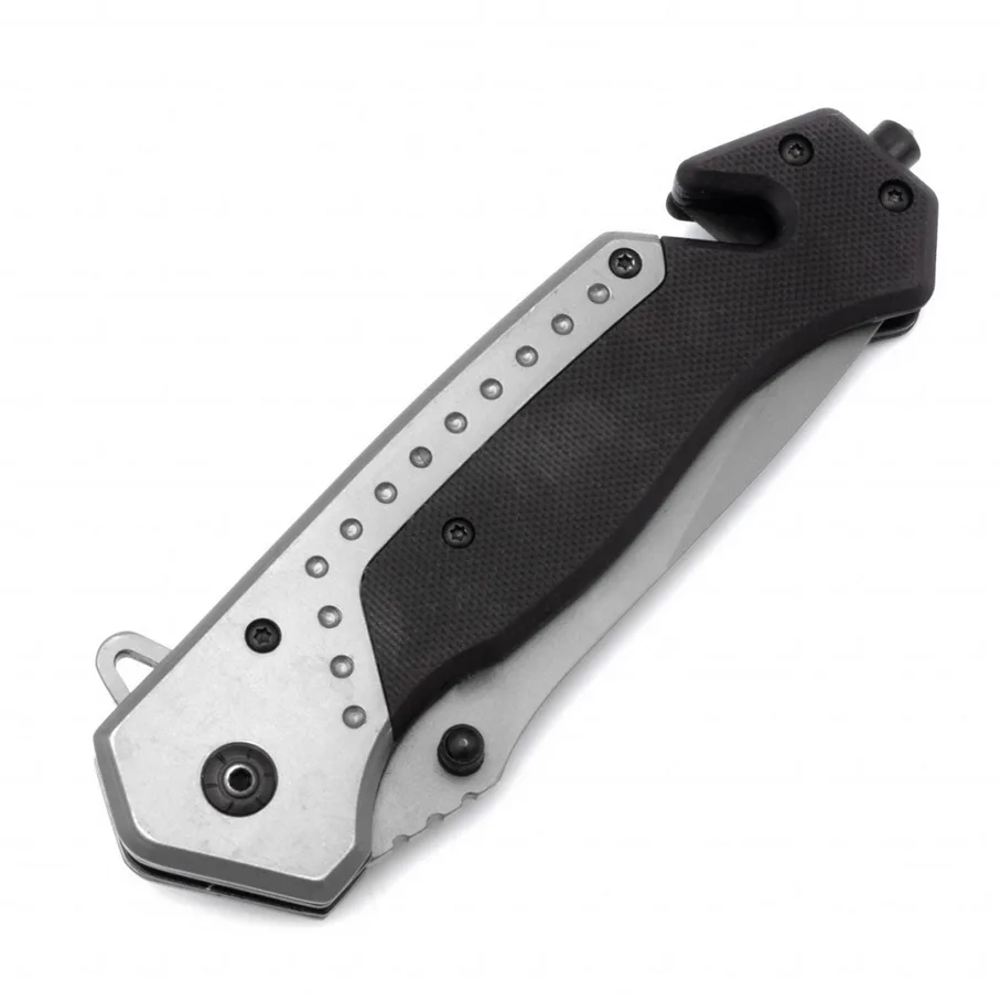 Nóż wyposażony jest w przecinak do cięcia pasów i zbijak do szyb, dzięki czemu przyda się w wielu trudnych sytuacjach.