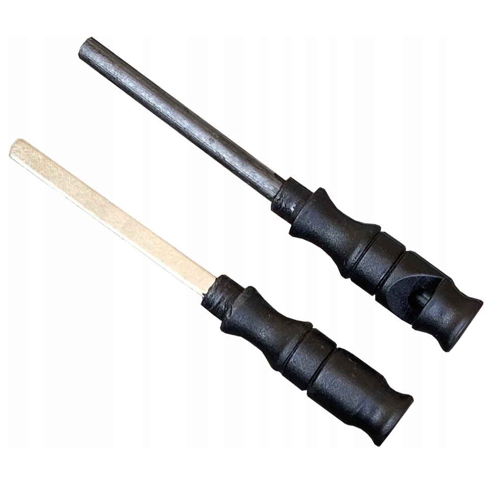 Dodatkowo w komplecie nóż wyposażono w ostrzałkę oraz krzesiwo ze zintegrowanym gwizdkiem ratowniczym umieszczone w polimerowej części pochewki.