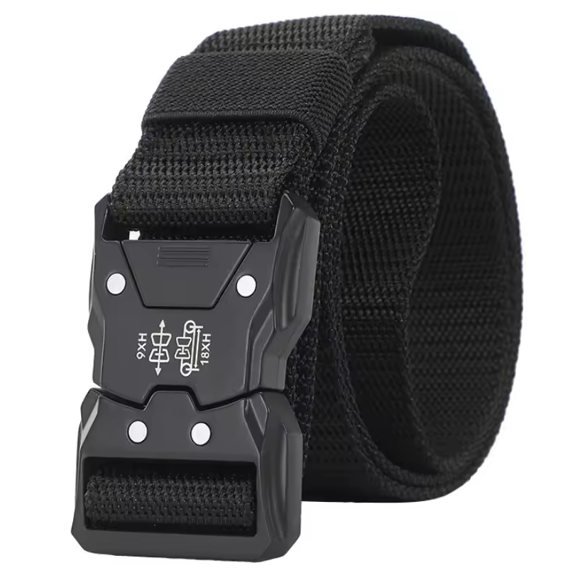 Mocny, nylonowy pas taktyczny z łatwą możliwością regulacji oraz metalową klamrą typu QR.