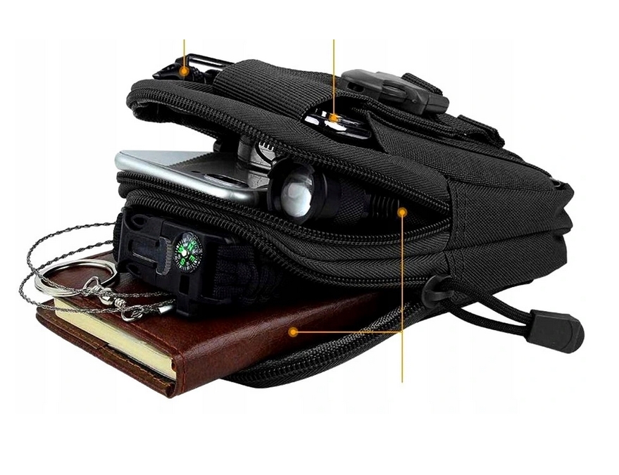 Istnieje możliwość zawieszenia saszetki na karabińczyku ponieważ została wyposażona w specjalny uchwyt.