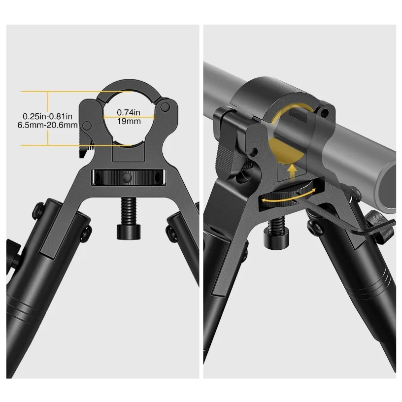 Dwójnóg mocowany jest na lufy o średnicy 11mm-19 mm.