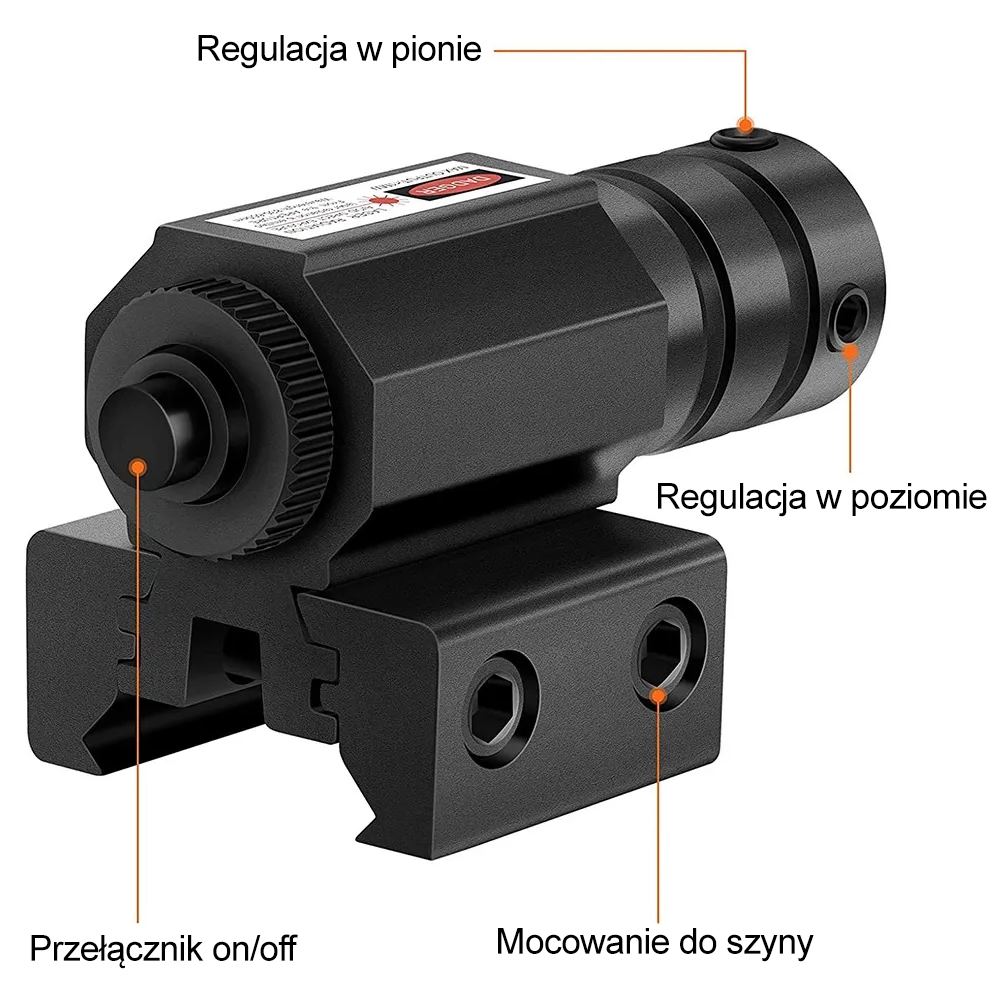 Wskaźnik laserowy z montażem do broni przeznaczony do pistoletów, wiatrówek, karabinków, pcp, ASG, paintball.