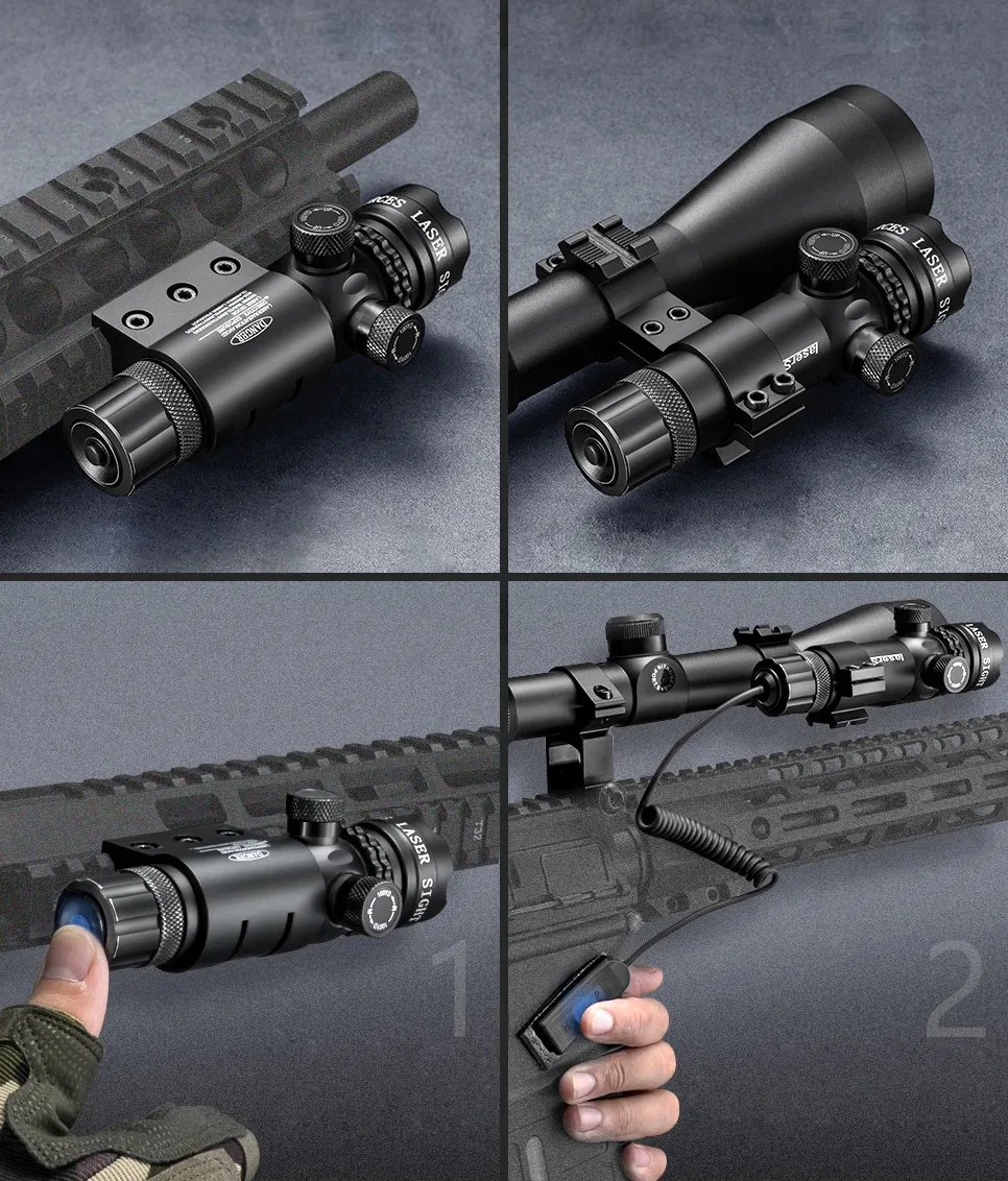 Wskaźnik laserowy z montażem do broni przeznaczony do pistoletów, wiatrówek, karabinków, pcp, ASG, paintball.