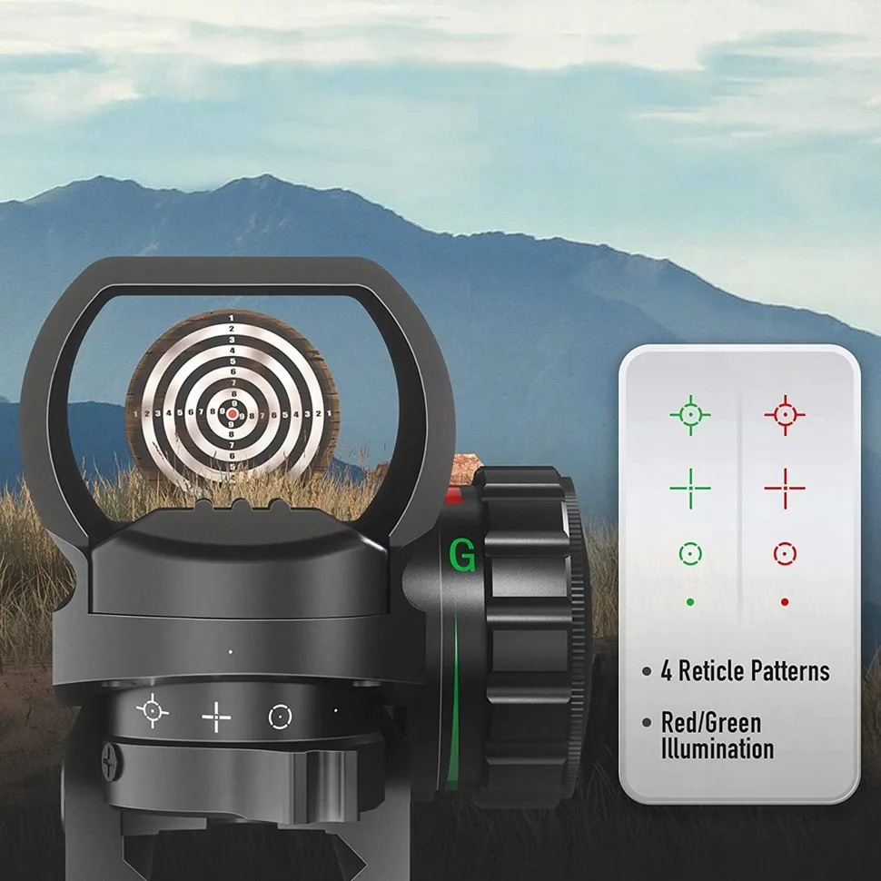 Kolimator daje możliwość podświetlenia krzyża celowniczego w kolorze czerwonym lub zielonym oraz cztery różne wzory siatki do wyboru.
