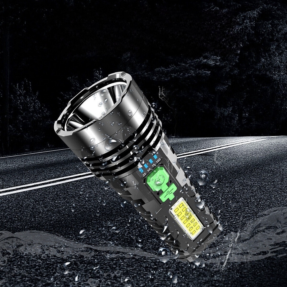 Latarkę wyposażono w 4 tryby świecenia: 100%/50%/światło pulsacyjne/oświetlenie boczne COB.