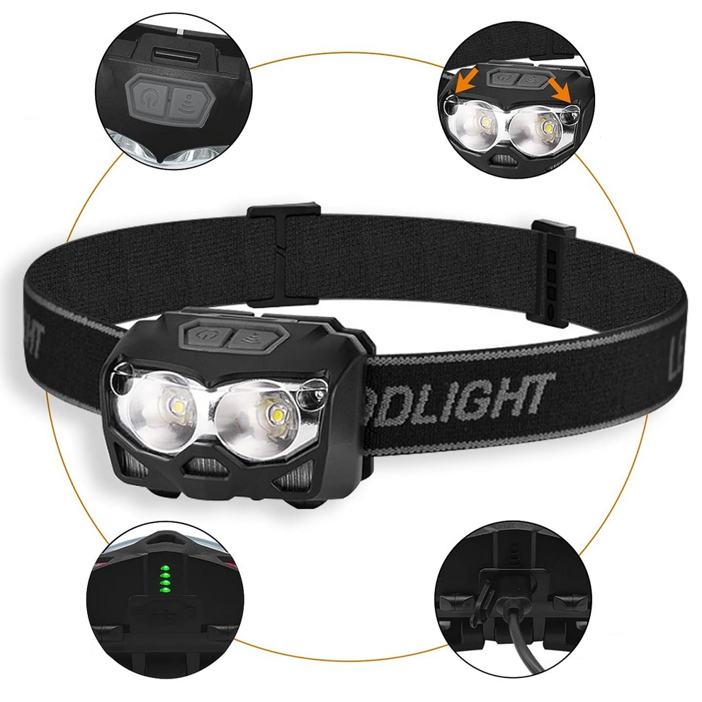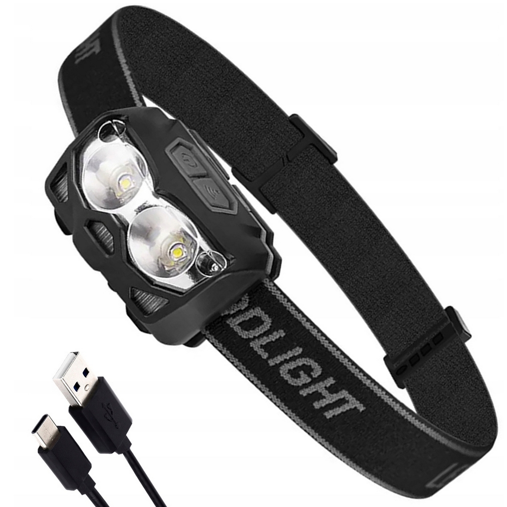 GENETIC® Latarka czołowa czołówka lampka led xpe usb czunik ruchu wodoodporna