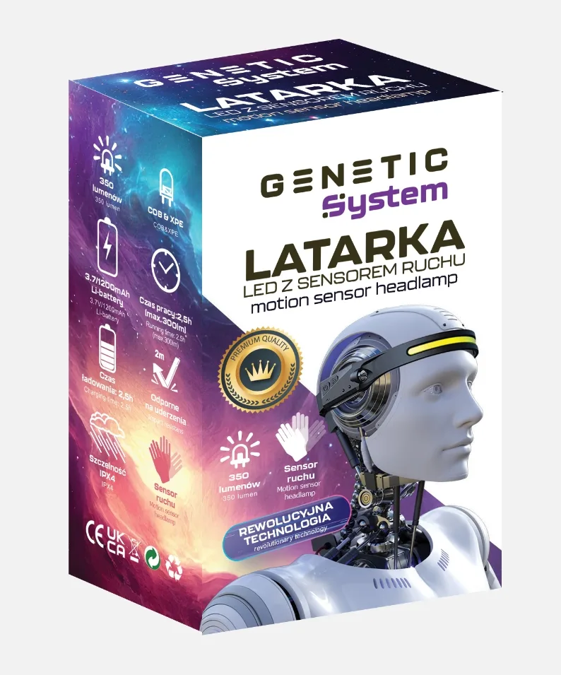 Napisz pierwszą opinię o „GENETIC® Latarka czołowa led czujnik ruchu czołówka akumulator usb 41 led”