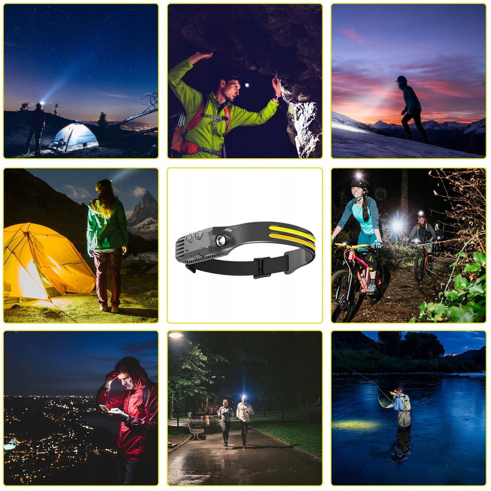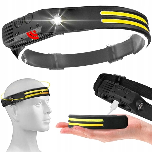 Latarka czołowa led czujnik ruchu czołówka akumulator usb
