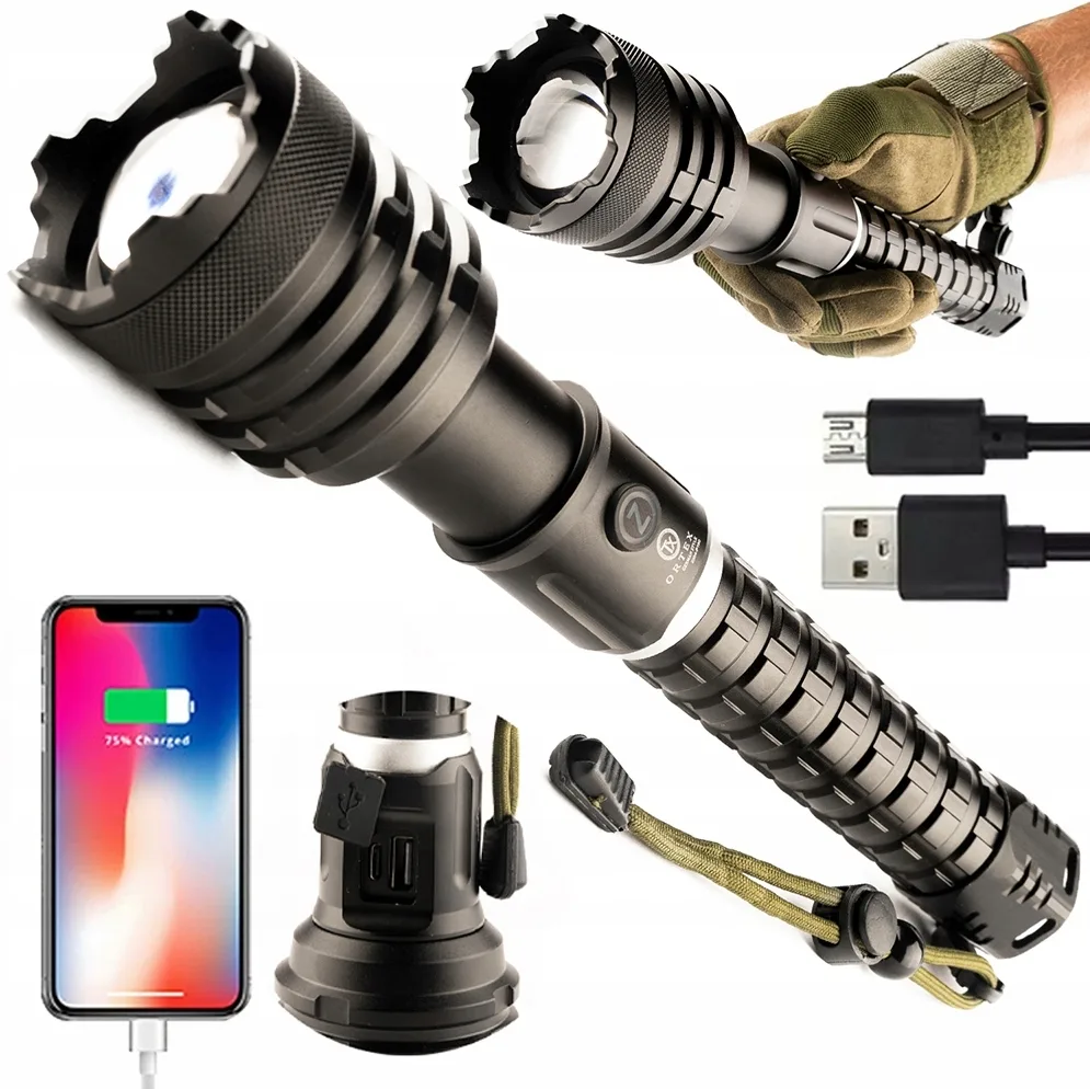 Latarka taktyczna wojskowa led mocna powerbank zoom