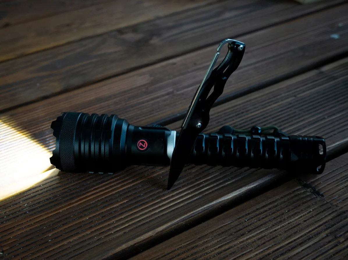 Funkcja ZOOM umożliwia zmianę odległości ogniskowania – pozwala to na zmianę z silnej, wąskiej wiązki o dużym zasięgu (nawet 1000m) na szeroką wiązkę oświetlającą duży obszar.