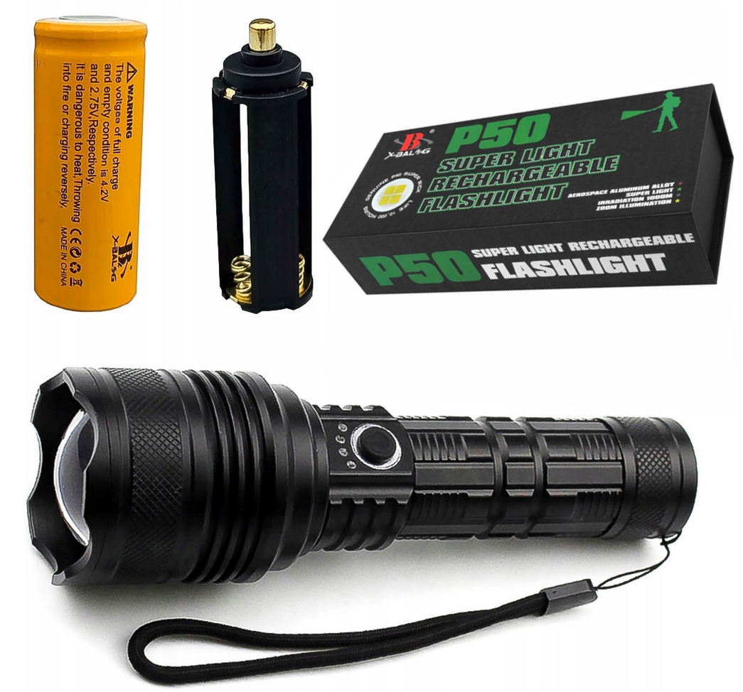Latarka posiada akumulator Li-ion 26650 6800mAh 3.7V.