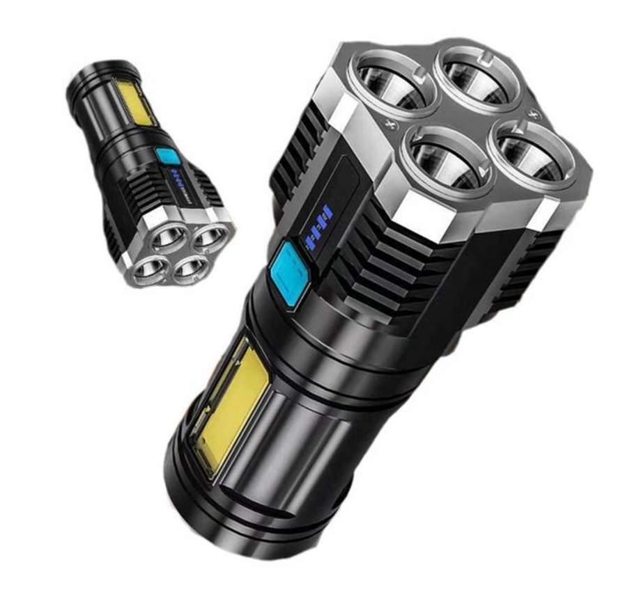 Latarka została wyposażona w 4 diody led na przodzie oraz 1 diodę led na boku urządzenia.