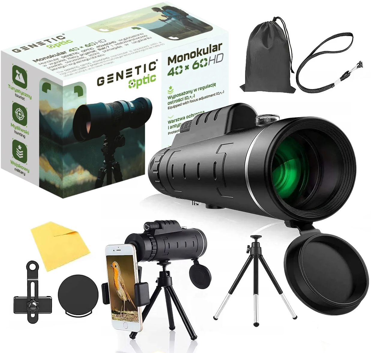 Napisz pierwszą opinię o „GENETIC® Monokular 40×60 lornetka wojskowa turystyczna klips statyw”