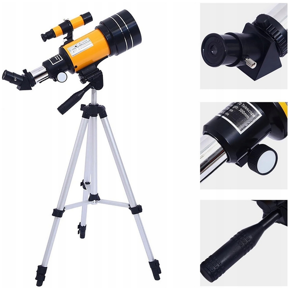 Teleskop astronomiczny typu refraktor model 70 mm / 300 mm to kompaktowa luneta idealna dla początkujących miłośników oglądania nieba.