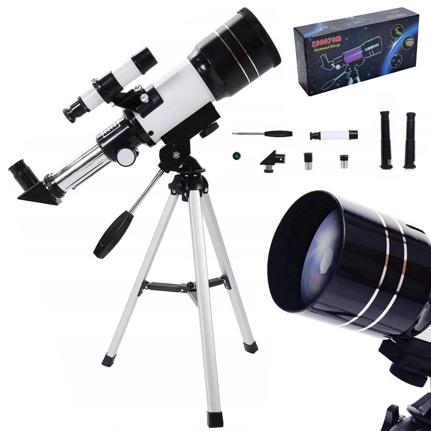 Teleskop astronomiczny typu refraktor model 70 mm / 300 mm to kompaktowa luneta idealna dla początkujących miłośników oglądania nieba.