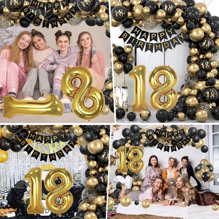 Napisz pierwszą opinię o „Girlanda balonowa xxl balony na 18 urodziny zestaw balonów dekoracji ozdoby girlanda czarno złota xxl 80 el”